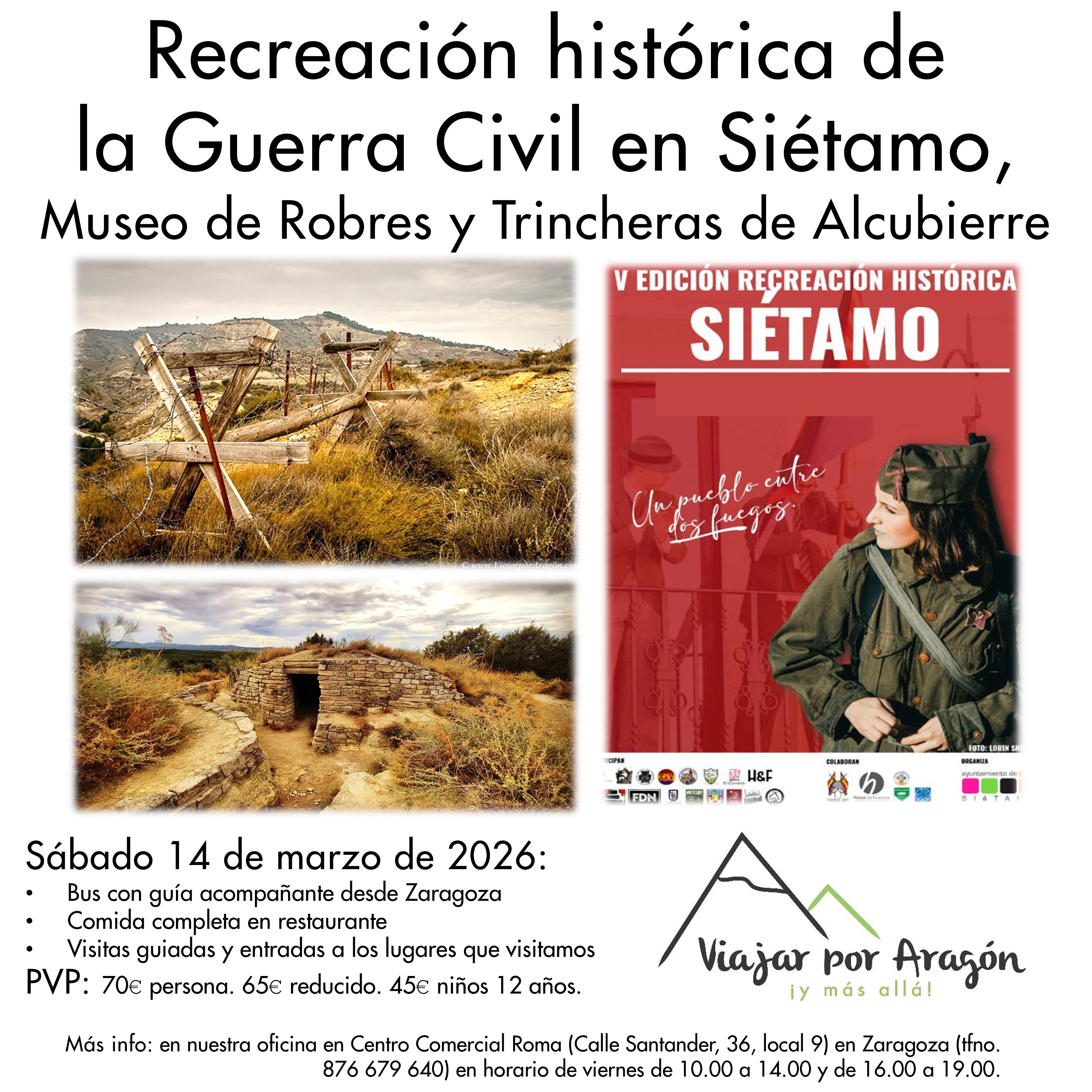 en Siétamo, Museo de Robres y Trincheras de Alcubierre FECHA: Sábado 14 de marzo ITINERARIO: 08:30 Salida desde Zaragoza 09:30 Llegada a Alcubierre e inicio visita guiada trincheras 10:30 Finalización […]