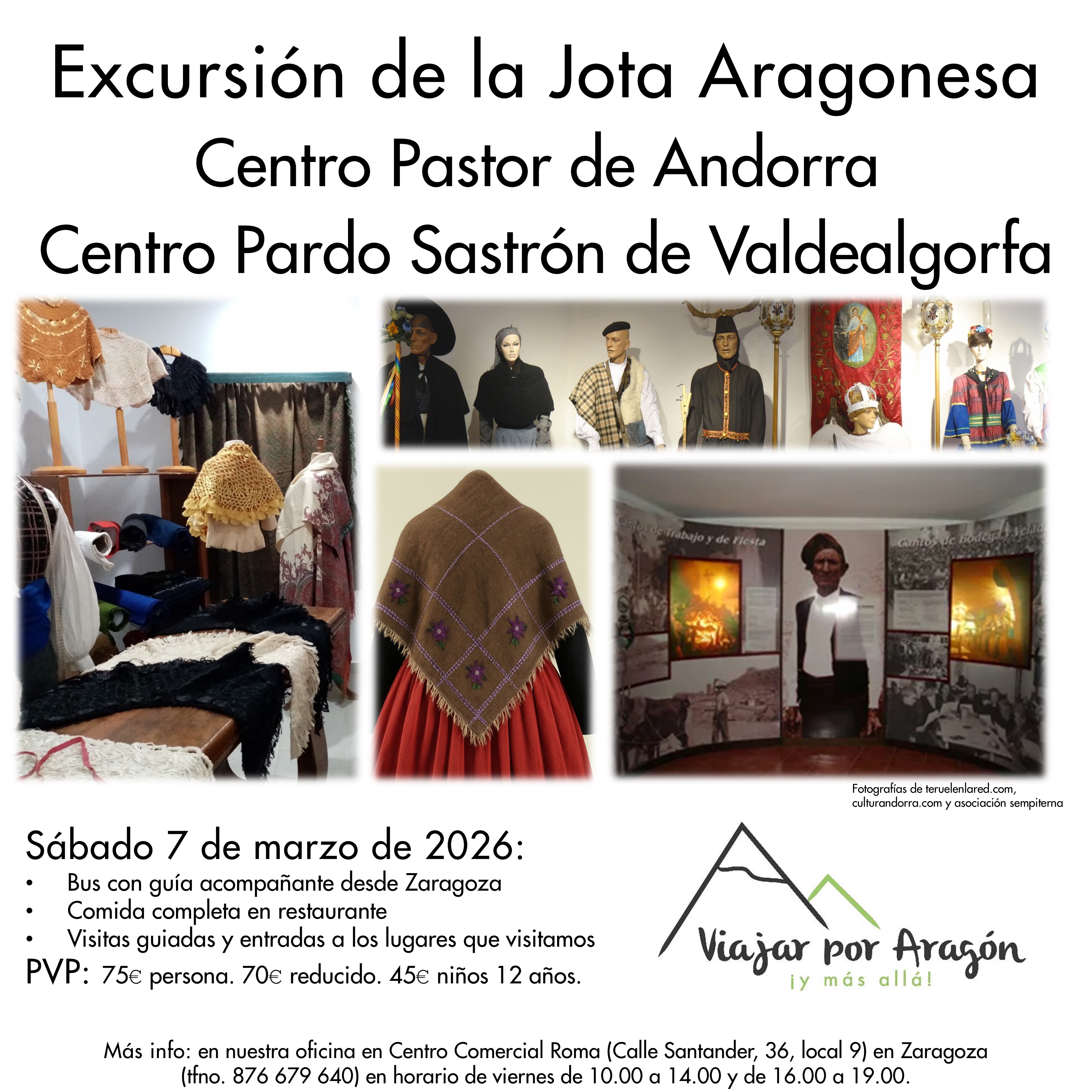 FECHA: Sábado 7 de marzo ITINERARIO: 08:00 Salida desde Zaragoza 11:00 Visita al Centro Pardo Sastrón y visita guiada a Valdealgorfa 13:30 Comida completa en restaurante 15:30 Salida a Andorra […]