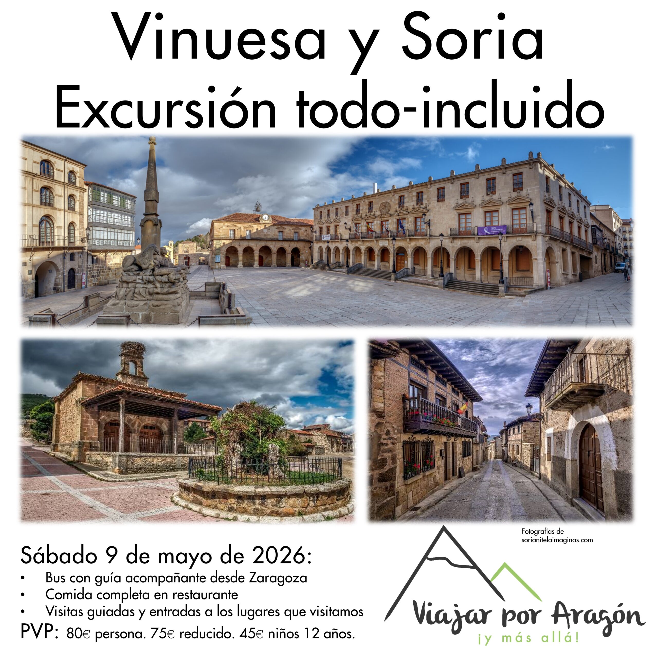 FECHA: Sábado 9 de mayo ITINERARIO: 08:30 Salida desde Zaragoza 11:30 Visita guiada en Vinuesa 13:00 Salida al restaurante 14:00 Comida completa en restaurante 16:00 Salida a Soria 16:30 Visita guiada […]