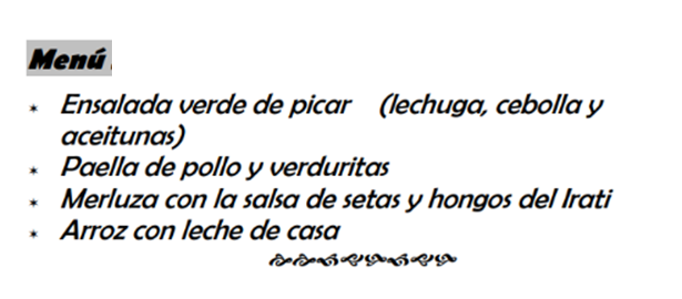 - 14:00 Comida completa en restaurante (ver menú abajo)