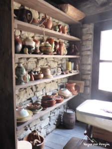 A lo largo de la calle Mayor pasamos por la casa museo, una casa que nos muestra los elementos típicos de labranza y ganadería de años pasados. Y un poco más adelante veremos la recreación de un hospital medieval. Sencillo, sin muchos elementos, y es que según nos explica Javier, los hospitales vienen de la palabra «hospitalidad», los que servían para dar comida y cobijo principalmente a los peregrinos, por lo que veremos mesas y sillas en la planta baja, y camas y somieres en la planta superior, todos ellos creados fidelignamente según el estilo que se utilizaba en la Edad Media.